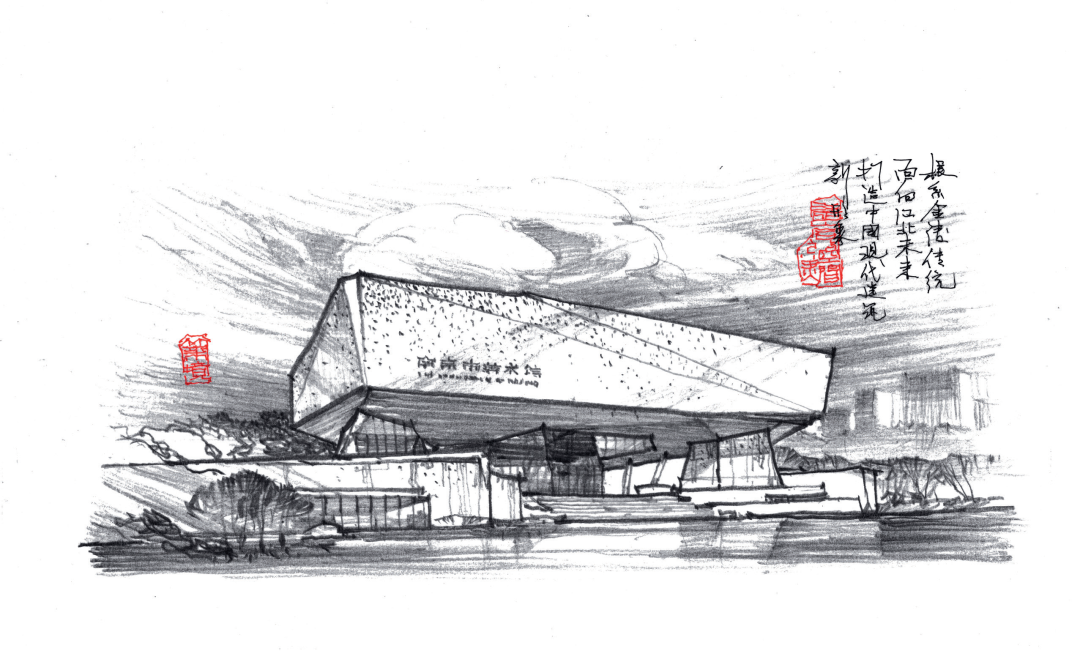 南京美術(shù)館位于國家級江北新區商業(yè)核心區,北望老山,南眺長(cháng)江,是江北地區青龍綠帶上的一顆璀璨明珠。項目打破傳統“藝術(shù)殿堂”的高冷形象,強調功能復合,加強美術(shù)館的開(kāi)放性,是當代文博類(lèi)建筑的發(fā)展趨勢。設計充分考慮這一特點(diǎn),打造了一個(gè)能吸引廣大市民的充滿(mǎn)活力的公共空間。設計中,美術(shù)館距基座18m架空,最大限度地引入了自然山水與城市景觀(guān),建筑成為全方位對外開(kāi)放的立體園林。這一立體園林與以水墨畫(huà)為意象的中央大廳的彩釉玻璃外墻,準確地表達了美術(shù)館的藝術(shù)形象,更體現了一種“中國調性”。